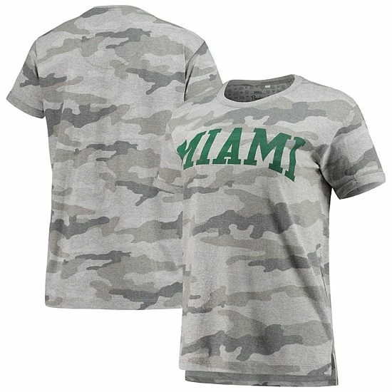 Combine a popular outdoors style and your favorite college team with this Miami Hurricanes T-shirt from Pressbox. It features an allover camo pattern and the school name printed in tall capital letters. The longer back hem will also help this Miami Hurricanes tee fit comfortably.