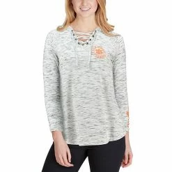 No matter the occasion, this Clemson Tigers Kate Space Dye T-shirt from Pressbox is the perfect game day top for you! Whether you’re at home or watching from a friend’s house, no one will be able to deny you’re the #1 Clemson Tigers fan. The flattering, lace-up neckline puts a special finishing touch to help you show off your edgy team style.