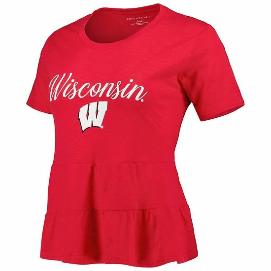 If you’re looking for a way to add some casual flair to your game day wardrobe, grab this Wisconsin Badgers Willow T-shirt. The ruffle on the bottom adds a flirty touch to this tee. The blended material makes this a comfortable top for cheering your Wisconsin Badgers to victory.