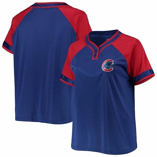 Show which ball club you are rooting for with this Chicago Cubs T-shirt. It features a stitched team applique highlighted by contrasting trim and stripes. Raglan sleeves also create some extra arm room for better movement, and the rounded hem gives this Chicago Cubs tee a more comfortable fit.