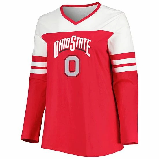 Leave no doubt about your dedication to the Ohio State Buckeyes each time you sport this Sleeve Stripe T-shirt. It features bold Ohio State Buckeyes graphics printed across the chest along with a V-neckline for a subtle flourish. Plus, the sleeve stripes offer an eye-catching contrast that makes this top a fitting focal point in any game day ensemble.