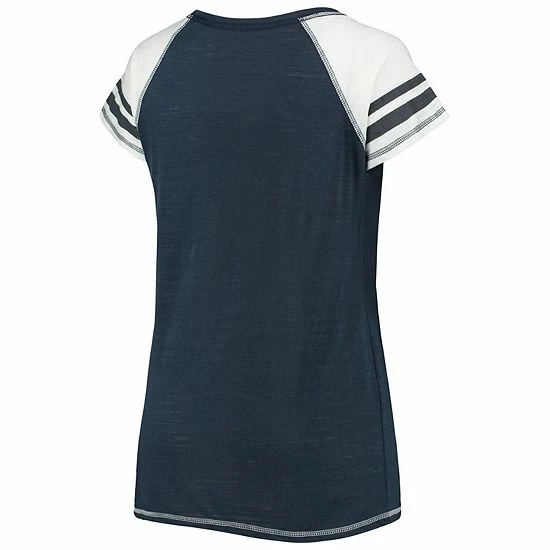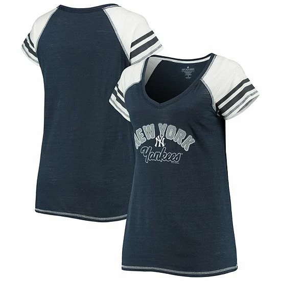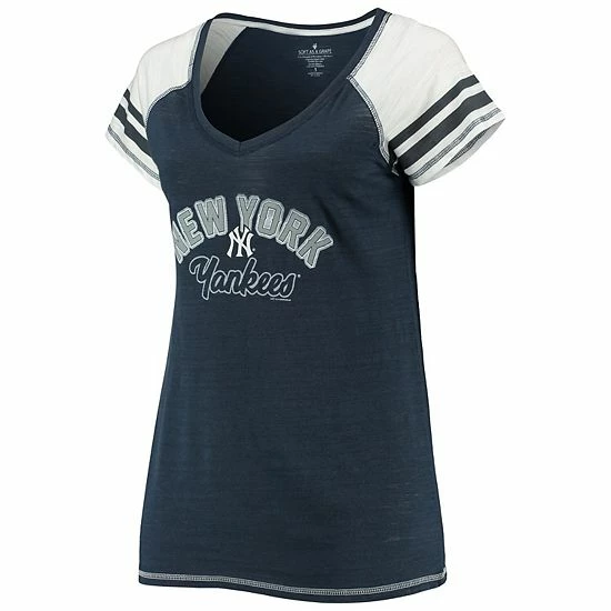 Revitalize your wardrobe while remaining as comfy as can be with this New York Yankees Curvy Colorblock T-Shirt from Soft as a Grape. Along with roomy raglan sleeves, this tee offers tri-blend material that brings long-lasting comfort and stretch. Best of all, the striking New York Yankees graphics let everyone know where your devotion lies.