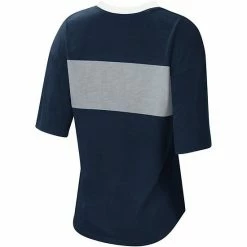 Deepen your status as a true New York Yankees fan by sporting this Lead Off notch neck T-shirt from Touch. While the dual-blend fabric brings long-lasting softness, the rounded droptail hem offers extra coverage. Best of all, the glimmering New York Yankees graphics and unique notch neck add a touch of chic flair to your game day getup.
