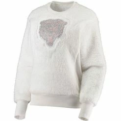Cheer on the Chicago Bears with your fandom shimmering in this Milestone Tracker pullover sweatshirt from Touch. It features an embroidered applique of the Chicago Bears logo accented by sparkly rhinestones. The fluffy exterior also creates a soft and cozy feel.