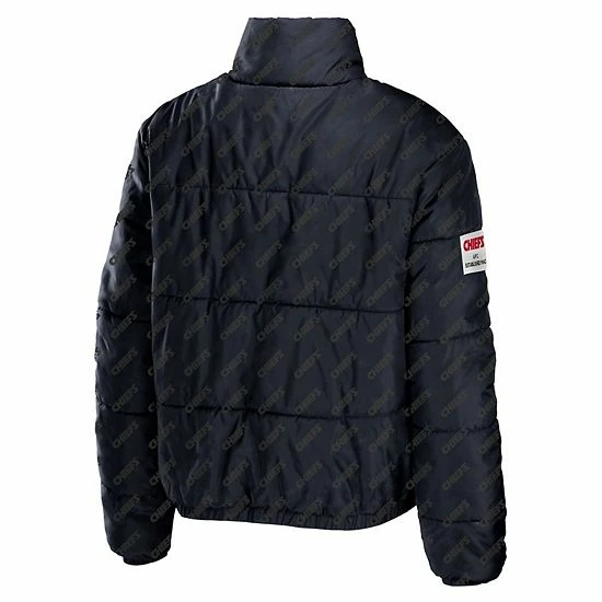 Add comfort and style to any cold day look with this Kansas City Chiefs puffer jacket from WEAR by Erin Andrews. It features the team’s logo over a repeating wordmark and a matching patch on the right sleeve. The quilted design on this full-zip jacket provides extra warmth, perfect for frigid Kansas City Chiefs game days.