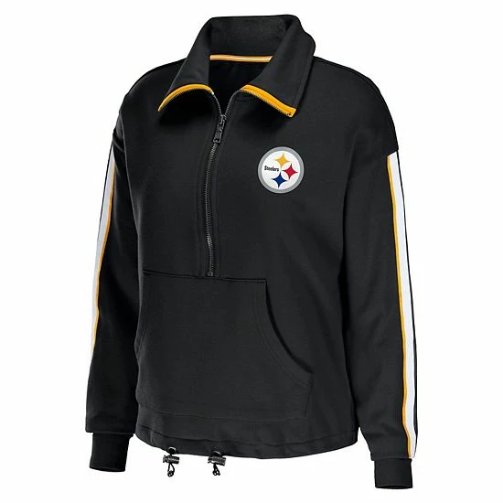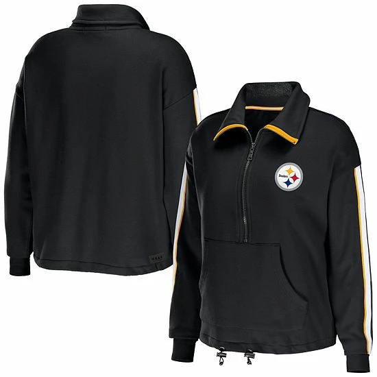 This classic Pittsburgh Steelers half-zip from WEAR by Erin Andrews is the perfect display of your team spirit. Dropped shoulders increase your sleeve room for easier movement, and the adjustable waistband allows for a customized fit. Signature Pittsburgh Steelers colors and graphics complete this pullover for a stylish piece of fan gear.