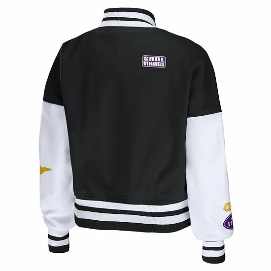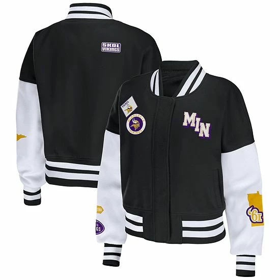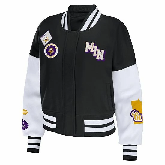 Put your Minnesota Vikings pride on full display with this Varsity jacket from WEAR by Erin Andrews. The full-snap front allows you to wear it open or closed, while the dropped shoulders offer extra room for flexibility. Best of all, the striking Minnesota Vikings design with eye-catching patches boasts your team spirit in an authentic fashion.