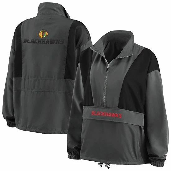 Support your Chicago Blackhawks with a functional piece of outerwear this season, the Popover Packable half-zip jacket from WEAR by Erin Andrews. Along with elastic cuffs and an adjustable waist hem, it features a half-zip closure and Olympic collar for maximum coverage. Chicago Blackhawks graphics are displayed on both the front and back for a constant showcase of your favorite team.