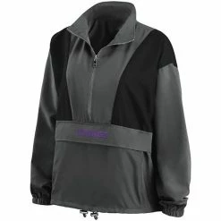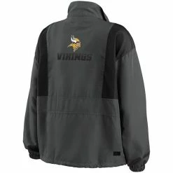 Support your Minnesota Vikings in a functional piece of outerwear this season with the Popover Packable half-zip jacket from WEAR by Erin Andrews. Along with elastic cuffs and an adjustable drawcord, it features a half-zip closure and Olympic collar for maximum coverage. The hidden zippered front pouch pocket along with its packability is perfect for when you need storage on the go. Best of all, the Minnesota Vikings graphics are displayed on both the front and back for a constant showcase of your favorite team.