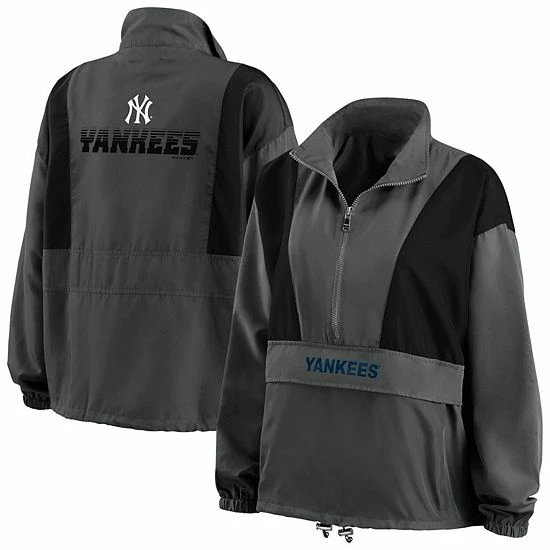 Weather the elements on game day with this Packable half-zip jacket from WEAR by Erin Andrews. Its lightweight design is perfect for resisting rain and wind, and the adjustable features help keep you protected and comfortable. Subtle yet striking New York Yankees graphics ensure your fandom is easily noticeable.