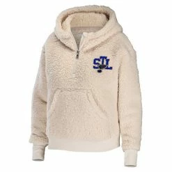 Add the next go-to option to your rotation of St. Louis Blues gear with this quarter-zip hoodie from WEAR by Erin Andrews. It features plush sherpa fabric, which works to keep you warm and snug when the temperature starts to drop. The embroidered graphics on the chest pop off the cream color, making it the perfect option for cheering the St. Louis Blues to victory.