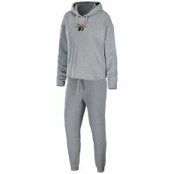 Cozily watch your favorite team on game day in this Philadelphia Flyers Sleep set from WEAR by Erin Andrews. It includes a pullover hoodie and pants, both featuring subtle yet striking Philadelphia Flyers graphics. Dropped shoulders increase your arm room for extra comfort, while the cozy rib-knit fabric supplies softness and added appeal.