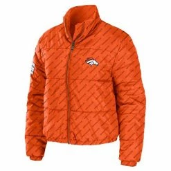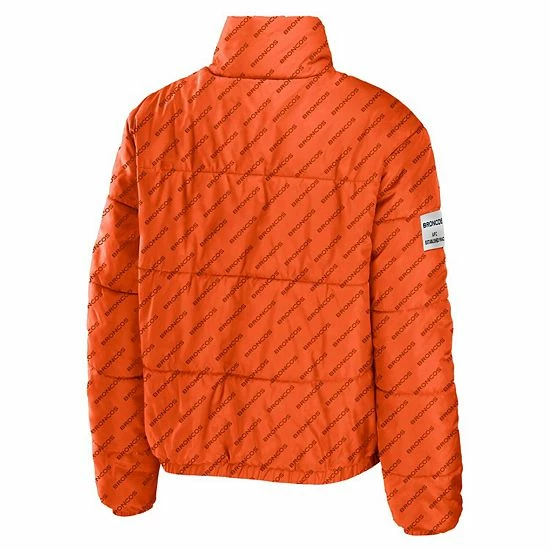 Add comfort and style to any cold day look with this Denver Broncos puffer jacket from WEAR by Erin Andrews. It features the team’s logo over a repeating wordmark and a matching patch on the right sleeve. The quilted design on this full-zip jacket provides extra warmth, perfect for frigid Denver Broncos game days.