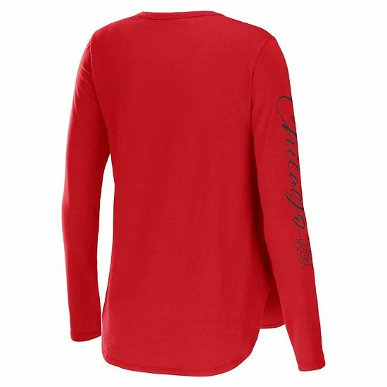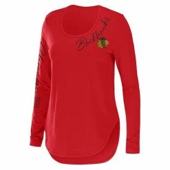 Highlight your unwavering Chicago Blackhawks fandom with this stylish T-shirt from WEAR by Erin Andrews. It features a scoop neck and rounded droptail hem, ensuring this spirited tee rests comfortably from top to bottom. Moreover, the team graphics going across the right sleeve and on the left chest are sure to have you hyped up for the next Chicago Blackhawks game day.