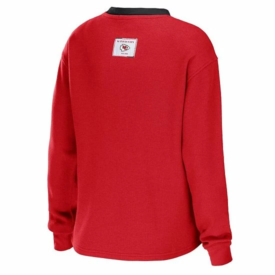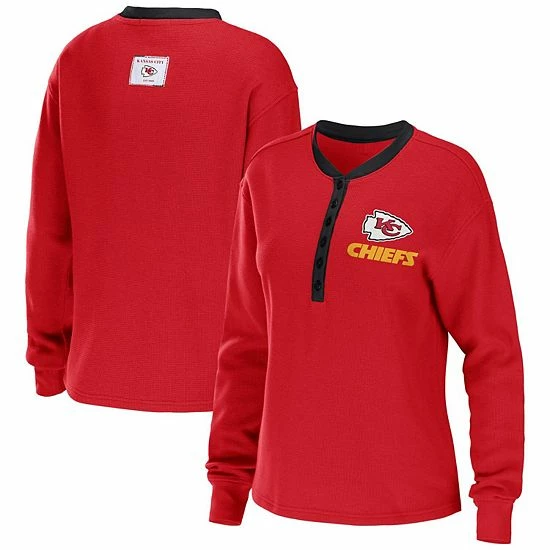 Show your stripes as a dedicated Kansas City Chiefs fan with this Henley T-shirt from WEAR by Erin Andrews. The waffle-knit design adds depth to the stylish Kansas City Chiefs colors and graphics. In addition, the dropped shoulders create extra room for fluid movements.