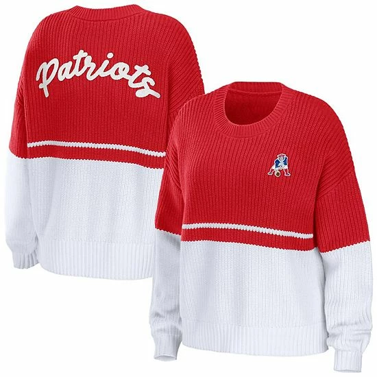 This Chunky pullover sweater from WEAR by Erin Andrews is where style meets comfort. It features an eye-catching New England Patriots design with signature colors and a chenille script wordmark across the back. Dropped shoulders create extra arm room, while the cozy midweight design keeps you warm.