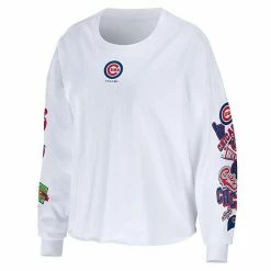Perfect for a grab-and-go or game day look, this Celebration cropped T-shirt from WEAR by Erin Andrews flexes your Chicago Cubs pride. Dropped shoulders give you more room to cheer on your favorites comfortably. Plus, the classic Chicago Cubs logo on the chest is complemented by bold graphics down the sleeves so that your fandom is seen from all angles.