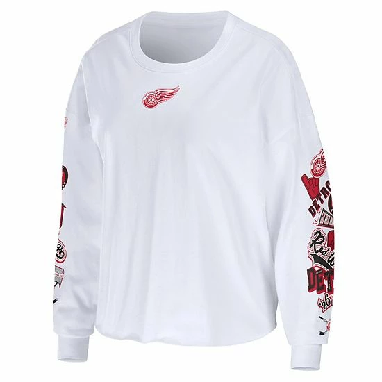 Perfect your Detroit Red Wings game day look by throwing on this Celebration T-shirt from WEAR by Erin Andrews. The cropped hem and dropped shoulders combine to give you the most stylish option for game day. Not only is the team’s logo featured on the chest, but each sleeve features an exciting design that is sure to get you pumped up for cheering the Detroit Red Wings to victory.