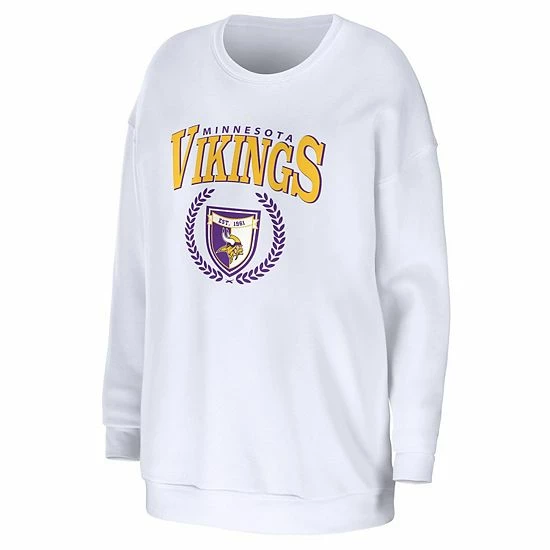When cold weather requires you to layer up, this Minnesota Vikings pullover sweatshirt from WEAR by Erin Andrews meets your needs. An oversized fit and dropped shoulders supply extra warmth and room when you need it. Plus, the fresh Minnesota Vikings graphics on the chest put your team spirit front and center.