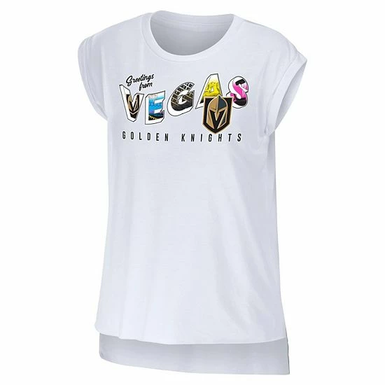 Rep the home team with this Vegas Golden Knights Greetings From T-shirt. This WEAR by Erin Andrews top features fun graphics styled like a classic postcard. Whether hitting the gym or enjoying the sun, this muscle tee adds a fun Vegas Golden Knights finish to any fan look.