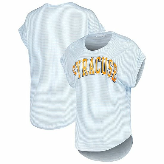 Combine comfort and fashion with this Syracuse Orange Day Trip T-shirt. It features soft, flowing fabric and a curvy shape on the sleeves and hem. The striped design also complements the Syracuse Orange graphics printed across the front.