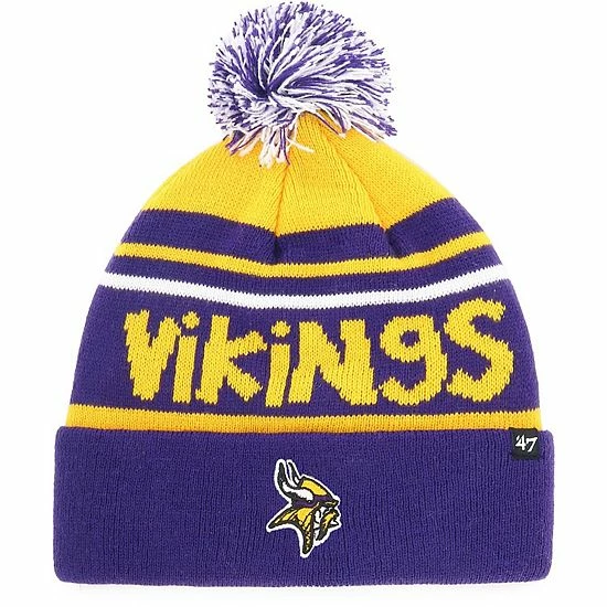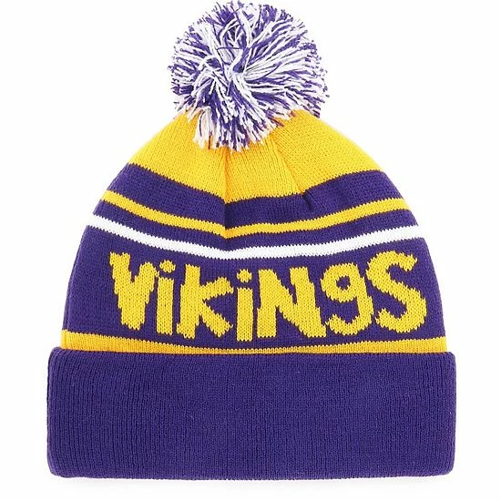 Keep your young fan’s head warm when cold temperatures arrive with this Playground Cuffed Knit Hat with Pom from ’47. This bold hat features prominent knit Minnesota Vikings graphics along with the franchise logo that will put your kiddo’s passion for the team front and center. The stunning look and fun pom on top make this lid a fall and winter must-have for any devout Minnesota Vikings fan.