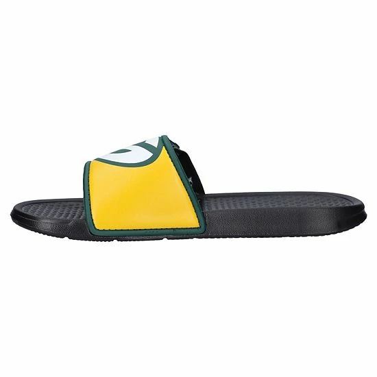 These FOCO Colorblock Big Logo Legacy slide sandals feature an adjustable hook and loop strap that provides a supportive fit, whether your young fan is headed to the Green Bay Packers game or just playing outside. The textured insole and outsole offer both a comfortable feel and plenty of traction. These slides are must-have footwear for any Green Bay Packers fan.
