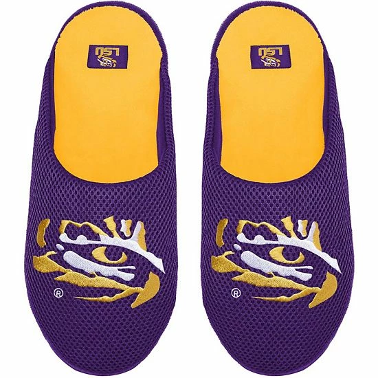 Give your young LSU Tigers fan the means to kick back and show love for their favorites with these Big Logo Colorblock mesh slippers. A must-have for any dedicated LSU Tigers supporter, they provide a soft, warm feel and show off large team graphics and colors to boot. Your kiddo will love putting on these FOCO slippers first thing each morning, especially on a cold day.