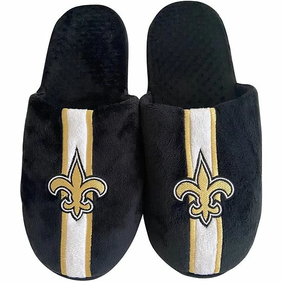 Keep feet cozy warm in these New Orleans Saints Team Stripe slippers from FOCO. They feature embroidered New Orleans Saints graphics highlighted by a stripe design. The slip-on style also makes them easy to use.