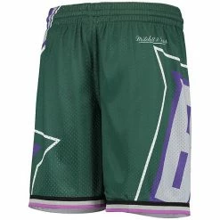 The Milwaukee Bucks of yesteryear were larger than life, and nothing makes that more clear than these Hardwood Classics Throwback Big Face mesh shorts from Mitchell & Ness. Their bold vintage design includes an oversized logo that wraps around the front and knit trim accents in authentic Milwaukee Bucks colors at the hem. These classic basketball shorts come complete with breathable mesh fabric and a drawstring waistband for a perfect fit every time.