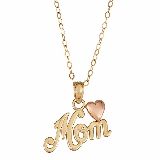 Show Mom how much you care with this charming two-tone 14k gold Mom pendant necklace.